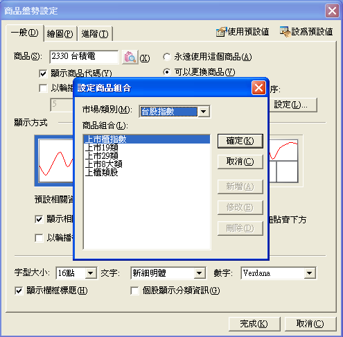 線圖顏色:可設定單一顏色或依前後價漲紅跌綠來顯示。
