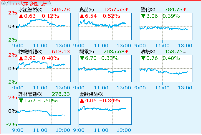 | 可同時看到多個商品的即時走勢圖,使商品的漲跌強弱幅度一目了然。 |