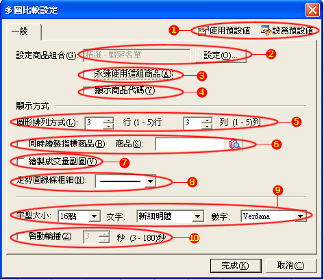 - 走勢圖線條粗細:使用者可選擇線條粗細。