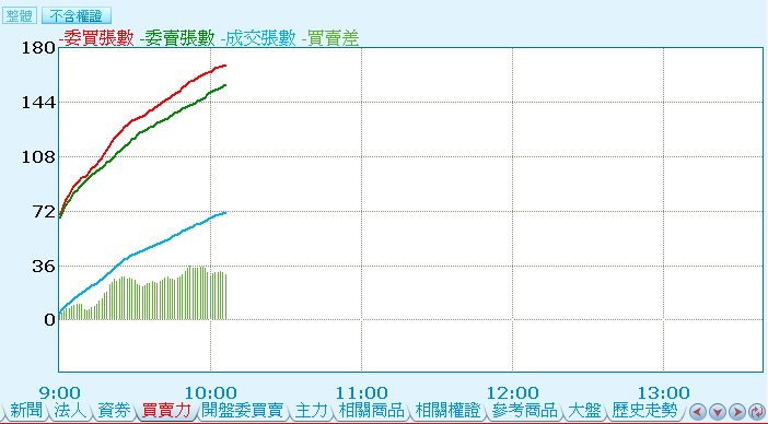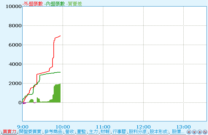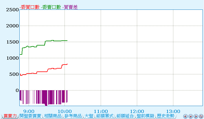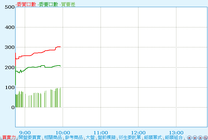 | 將委買、委賣或內盤、外盤張數數值,繪製成圖,以供分析。(僅台灣的商品才有此功能項!)