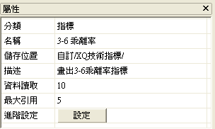 - 資料讀取:指標計算時資料讀取的K棒數,資料讀取要超過此設定值才會計算指標。
