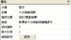 - 資料讀取:警示計算時資料讀取的K棒數,資料讀取要超過此設定值才會計算警示。
