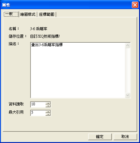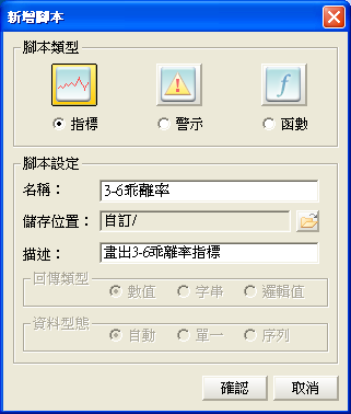 - 資料讀取:指標計算時資料讀取的K棒數,資料讀取要超過此設定值才會計算指標。