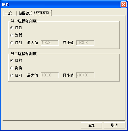 - 自訂:依使用者設定的最大值及最小值繪圖。