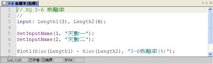 指標是視覺化的交易分析工具,編譯好的指標腳本可以在「技術分析」→「副圖」→「自訂指標」中選取。