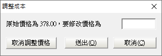 )跳出調整成本視窗。可於是窗內輸入欲修改之價格。