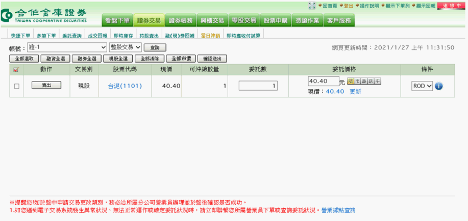 ) 可輸入委託數量,系統預設值為可以委託的庫存數量。