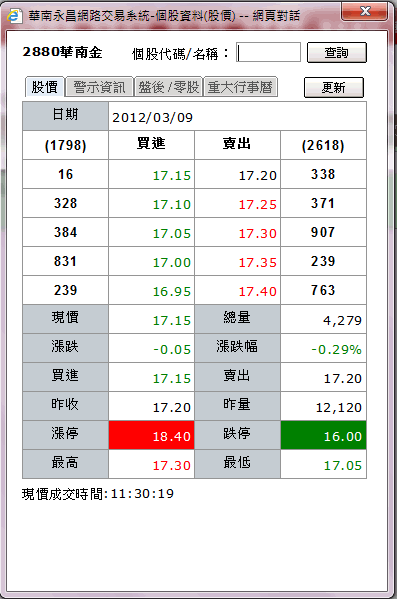 )以滑鼠左鍵點擊「更新」,系統會更新所顯示的「現價」;(