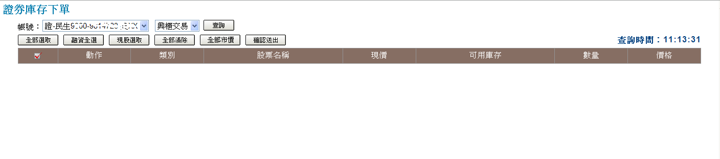 ( )由下拉式選單選擇交易帳號。 |