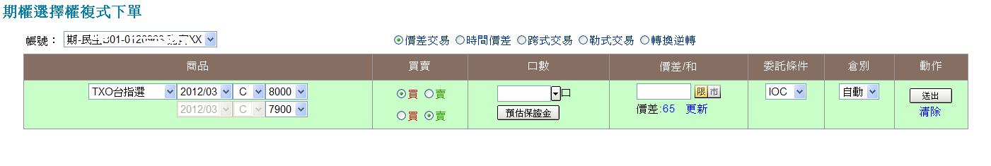( )以滑鼠左鍵點選按鈕,選擇複式下單的方式。 |