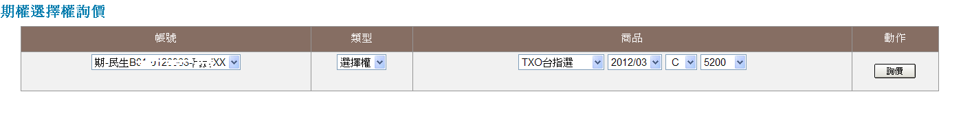 點選系統的〔期權下單〕按鈕,再點選〔選擇權詢價〕標籤。