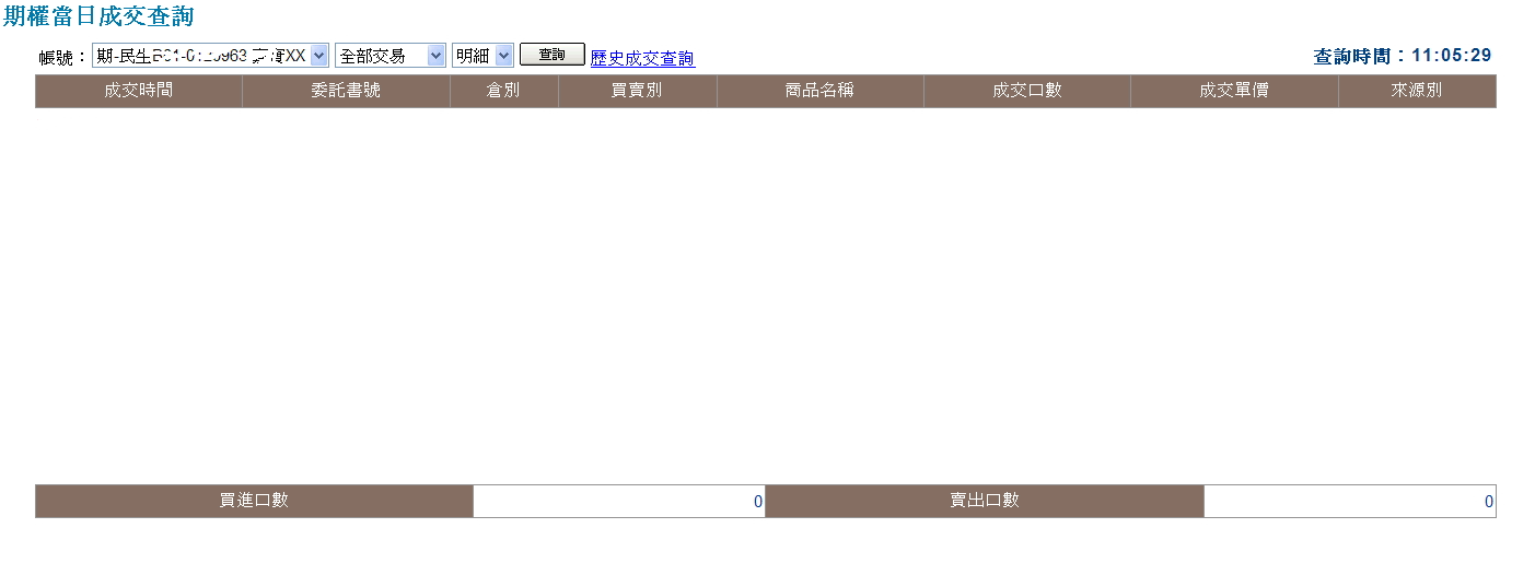 ),會轉到顯示歷史成交查詢頁面。