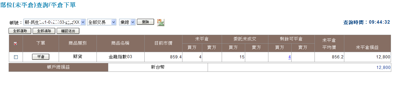 )按鈕,工作表會顯示當日的 未平倉部位資料。