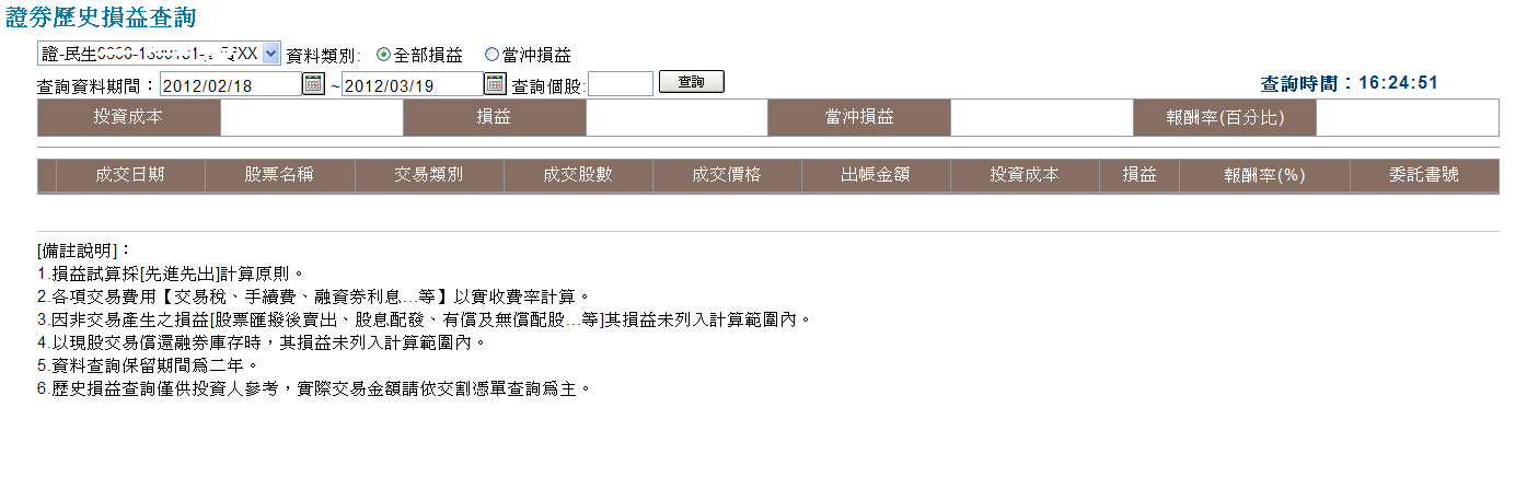 歷史損益查詢