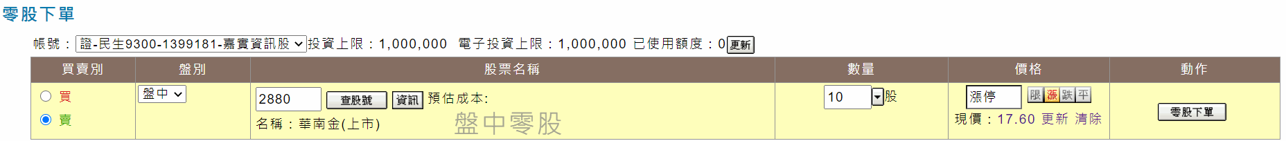 )以滑鼠左鍵點擊「更新」,系統會更新所顯示的「現價」;(