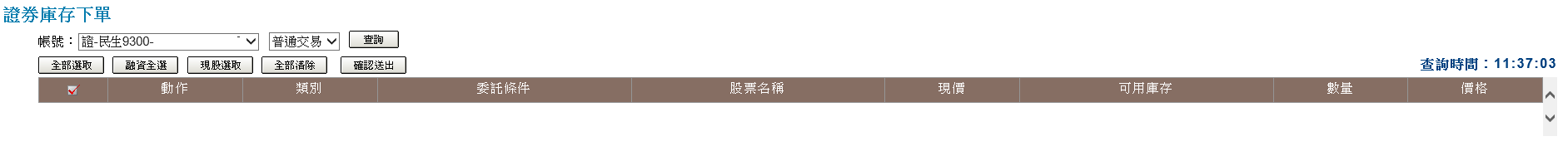 以滑鼠左鍵點擊( )按鈕,可將工作表內核取方塊以市價進行委託。