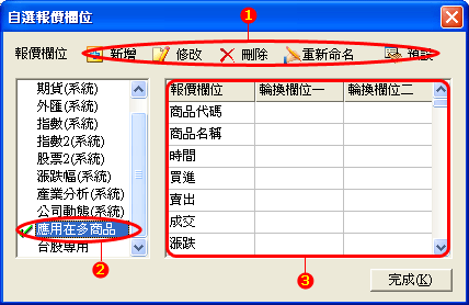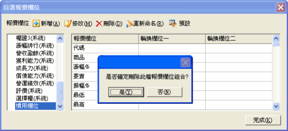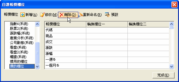(圖一:在對話盒中按[刪除]以刪除"慣用欄位")