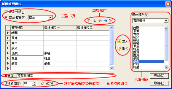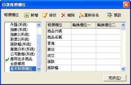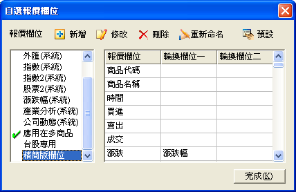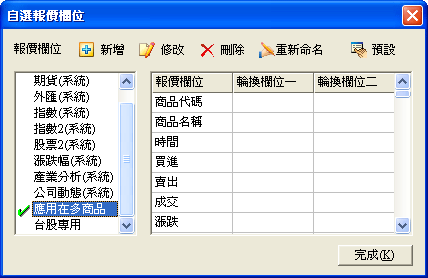 (圖一:點"新增"以增加一組自訂報價欄位組合)