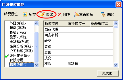 (圖一:變更修改"精簡版欄位"的組合名稱)