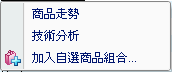 在類股名稱上點選滑鼠右鍵,可快速切換至該商品的商品走勢、技術分析,或是加入至自選商品組合。