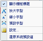 放大/縮小/預設字型:讓使用者調整作用欄框中的字型大小。