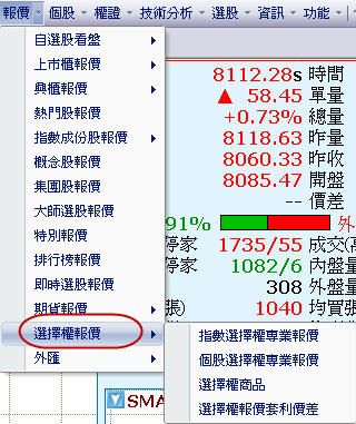 • 報價->選擇權報價