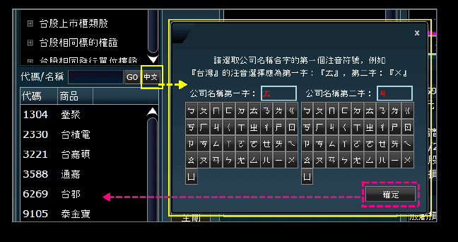 或是點擊[中文]ICON,會再跳出注音輸入查詢的對話盒。