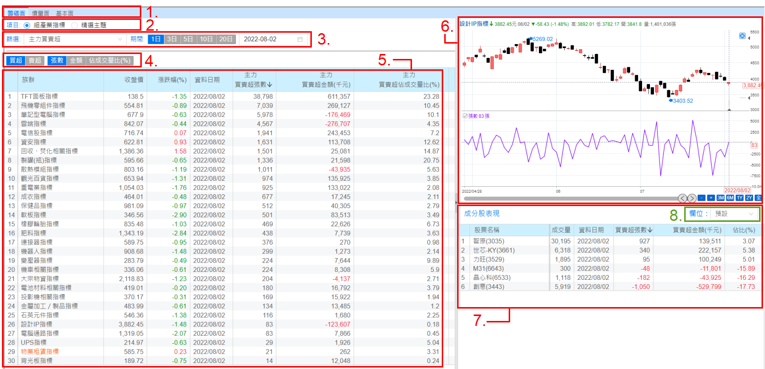 - 成份股提供不同欄位內容以快速掌握資訊。