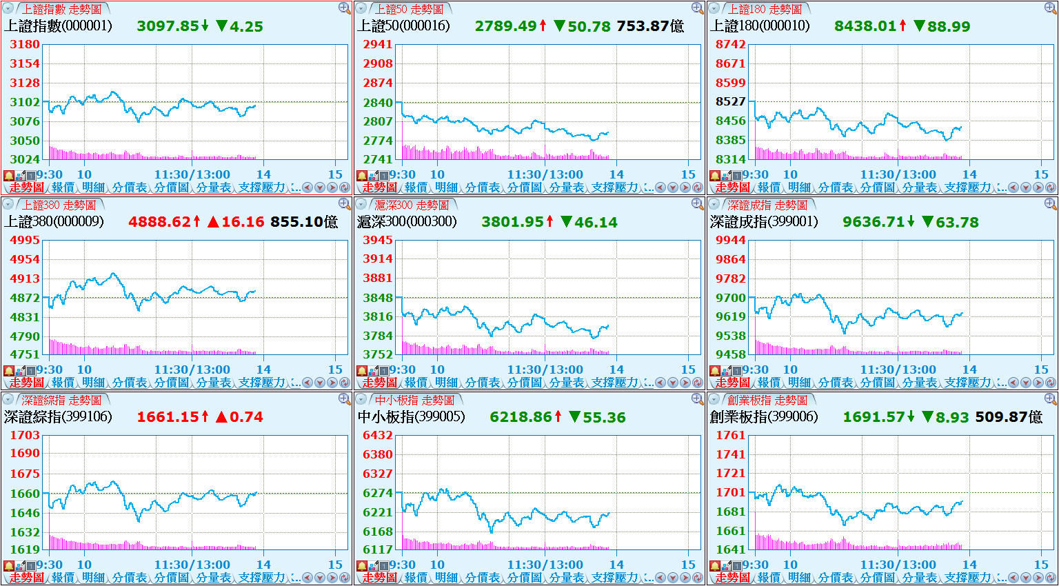 陸股即時模組,提供上證交易所與深圳交易所所有掛牌商品(包括創業板與中小企業版)即時報價,與公司分析。 是您前進中國股市的好幫手。 模組內容介紹如下。- 提供上證與深證市場重要指數。