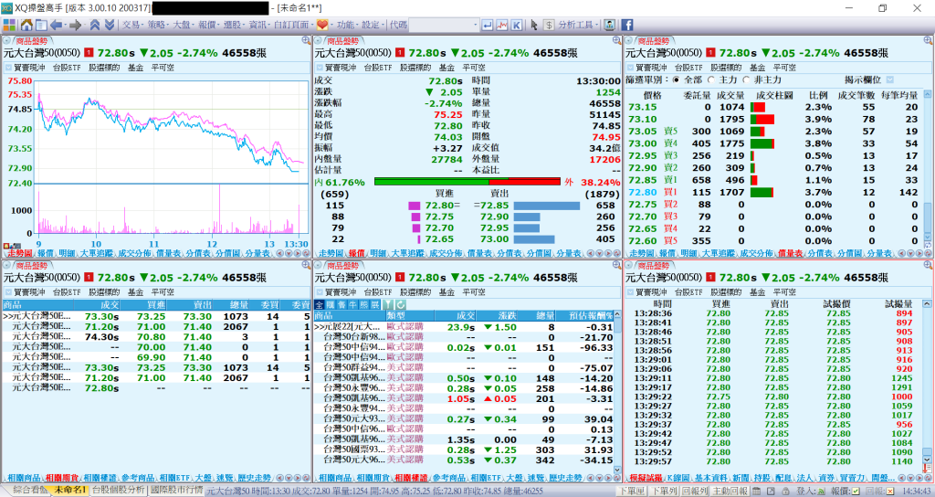 XQ台股即時行情, 全台獨家七大指標,盤中看大單一眼看穿!點我查看詳細介紹 提供台股證券、期貨、選擇權、興櫃市場交易時段即時行情。 模組內容介紹如下。