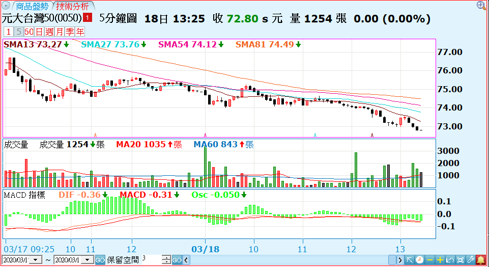 - 技術分析:提供歷史價量資料與多個技術指標。包括分鐘與日週月季年線圖。