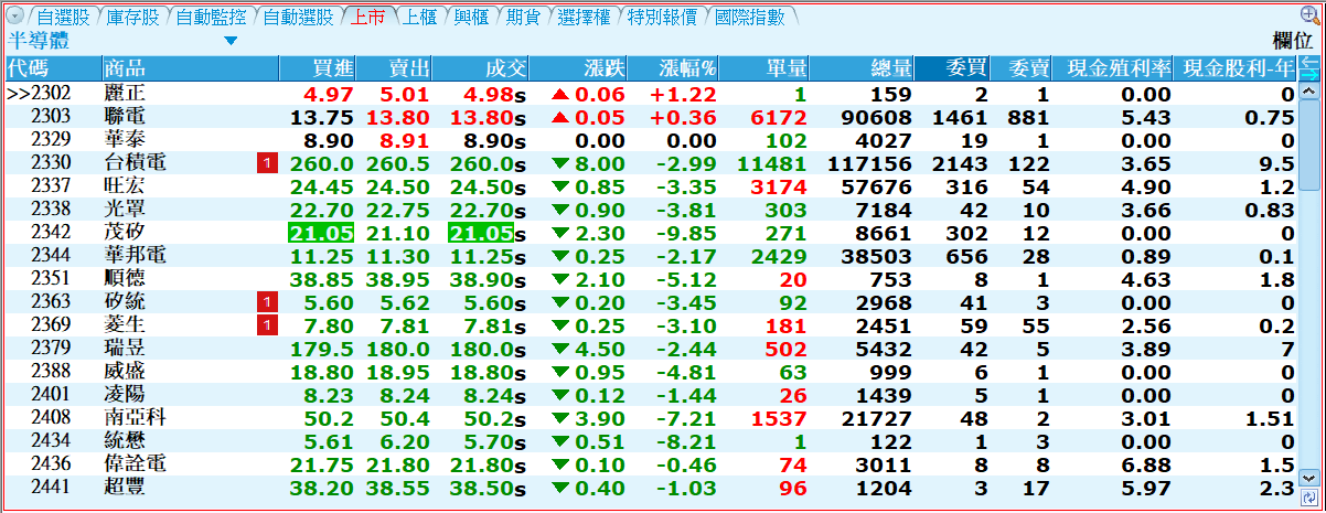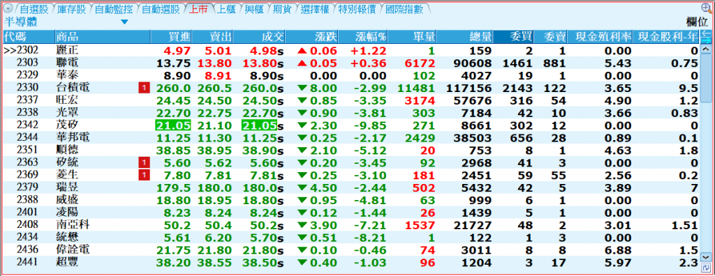 - 報價行情表:查看不同分類的商品。掌握類股輪動變化。