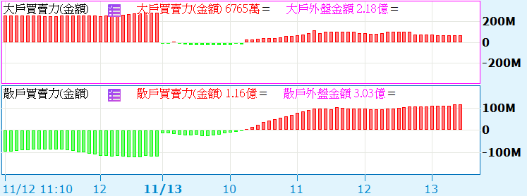 - 即時籌碼: 大戶買賣力(金額) 散戶買賣力(金額)