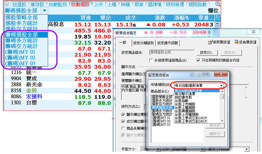 把自己每天都要執行的選股條件,設定成自動執行後,可以利用統計表格,查看符入選個股有符合的條件個數, 還可以搭配其他功能,例如在策略雷達上指定籌碼選股組合,做進一步的盤中價量分析。 1, 在我的選股法上,有啟動每日自動執行的按鈕