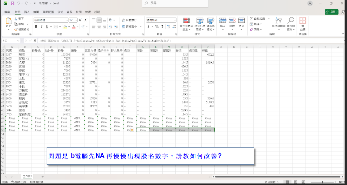 (先出現 #N/A,約 30 ~ 60 秒才陸續更新資料)