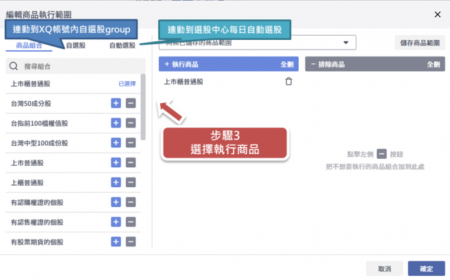 除了在量化積木本身可以看到觸發的標的以外,我們還可以在XQ本身的監控中查看。 共有兩個地方可以查看到。- 綜合看盤內的”自動監控”底下