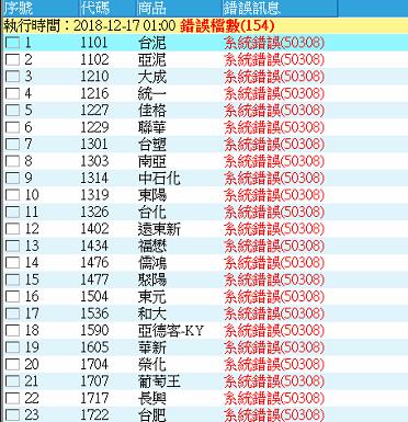 所以本篇文章會以列表的方式,告知大家各個錯誤代碼代表的錯誤原因, 選股中心的錯誤代碼說明,如下列表,提供給大家參考: