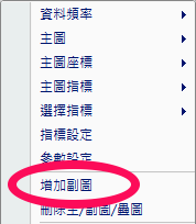 2. 在技術分析圖上按滑鼠右鍵,可以叫出右鍵選單,選擇