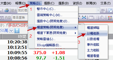 在瞬息萬變的股市中,行情波動和多空消息層出不窮,唯有資金流向是真槍實彈、無法掩藏。【以權追股】工具透過即時統計全市場權證交易金額在每檔個股上的排名,幫助我們快速掌握主力進出標的,輕鬆決定是否跟進。 ▼從XQ→策略→權證策略→開啟【以權追股】