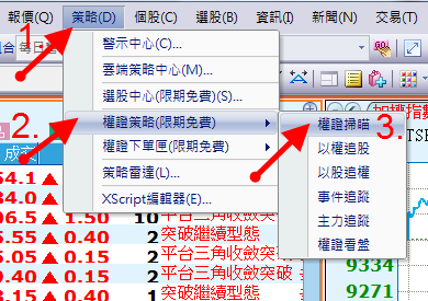 我們先來介紹【權證掃描】這個功能。它的核心功能在於快速洞察市場大戶於每日盤勢快速變化中的權證交易行為。 ▼從XQ策略->權證策略->可開啟【權證掃描】頁面。