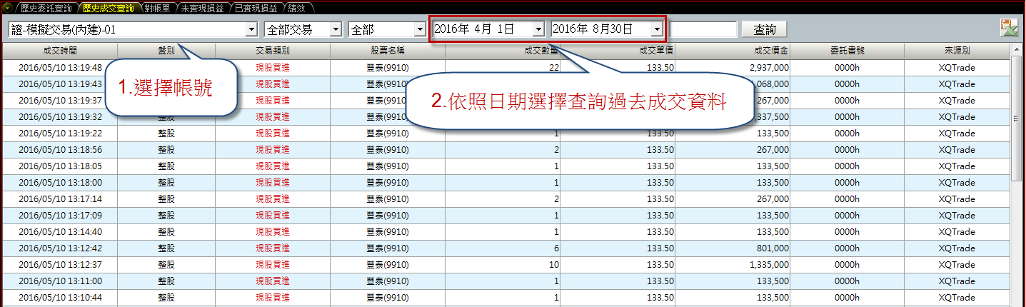 4.1.3. 歷史成交查詢:證券帳號的歷史成交紀錄