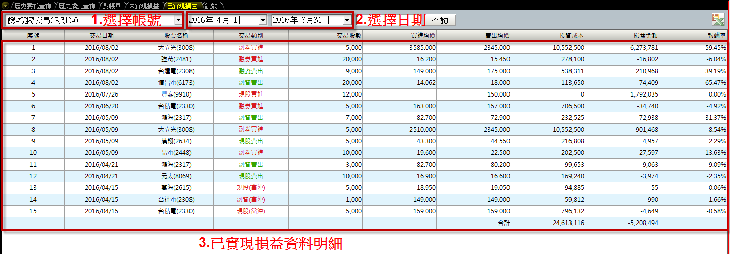 4.1.6. 已實現損益:證券帳號中已出場股票損益計算