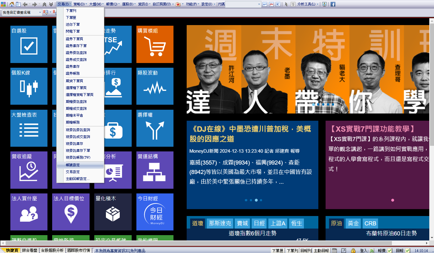 登入後,開啟交易目錄底下的帳號管理 登入後,開啟交易目錄底下的帳號管理  進到帳號管理後會看到系統內建的模擬交易帳號。 進到帳號管理後會看到系統內建的模擬交易帳號。