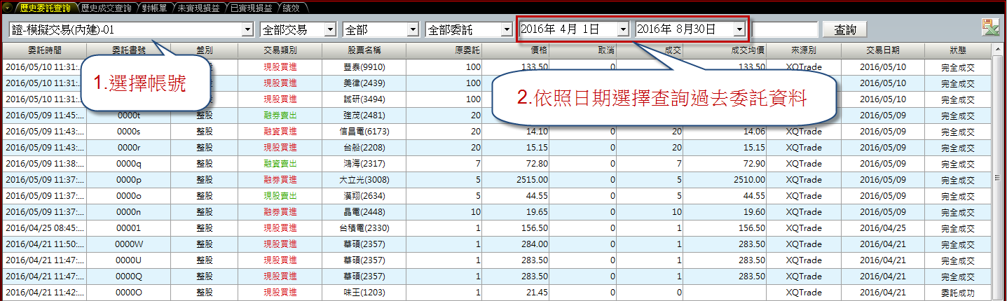 4.1.2. 歷史委託查詢:證券帳號的歷史委託紀錄