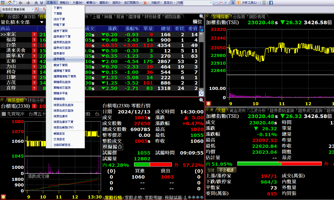 XQ 內建的「模擬交易帳號」功能,使用真實報價,建構出模擬交易環境,在每位用戶開設XQ(個人版)帳號時,系統就會開設專屬的模擬交易帳號,目前提供證券、期貨各兩組帳號,初始資金證券為5千萬元模擬部位、期貨為5千萬元模擬部位。 不論是交易界的菜鳥或老手,都能透過模擬交易帳號下單、調整策略,並利用重置功能反覆測試自己的投資策略,降低投資風險同時,系統還整合即時交易資訊與完整帳務查詢,讓每一步操作清晰透明,為實戰操作奠定穩固基礎。