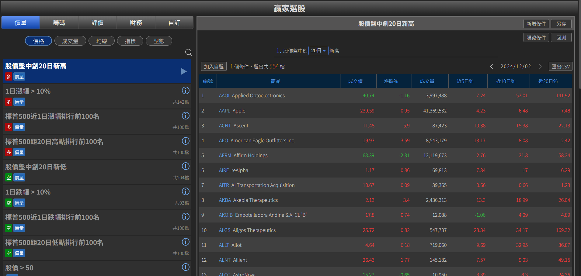 功能介紹:如何使用 XQ 美股分析? 投資美股需要深入的市場洞察和精確的數據分析,才能在競爭激烈的環境中取得成功。 XQ美股分析模組 為投資者提供即時行情和多樣化的分析工具,協助您掌握市場脈動,做出明智的投資決策。 1. 為什麼選擇XQ美股分析模組? 即時掌握市場動態 :透過盤中即時美股行情(資料來源:NYSE-BQT),您可隨時追蹤市場走勢,迅速反應,抓住投資良機。 深入的籌碼與市場研究 :模組提供機構持股分析、ARK持股變化、內部人交易資訊等功能,讓您全面了解機構法人和內部人士的投資動向,掌握市場趨勢。 精確的財務數據與投資看法 :透過EPS預估、市場預估與實際EPS數據,以及投資評級機構的最新建議,您可評估公司基本面,制定更精準的投資策略。 2. 主要功能介紹 2.1. 個股分析 2.1.1 如何進入「美股個股分析 」頁面? 只要在首頁點擊任一紫色按鍵之後 ▼首頁進入方式 接著再輸入您想查看的個股即可。 ▼輸入個股 2.1.2 機構持股分析 利用每季公告的13F報告,分析大型機構的持股變化,觀察專業經理人的投資操作,評估值得關注的股票或ETF。 在投資台股時,許多投資人會透過觀察三大法人和分點的進出動向來了解市場籌碼的變化。同樣地,在美股投資中, 13F報告 被視為重要的風向球,能揭示各大投資機構的持股變化,為投資決策提供關鍵參考。 什麼是13F報告? 13F的全名是 SEC Form 13F ,根據美國證券交易委員會(SEC)的規定,資產管理規模超過一億美元的機構必須在每季結束後的45天內,申報其管理的股票或ETF的多頭部位。透過這些大型機構的持股資訊,投資人能夠分析專業經理人的持倉變化,觀察哪些標的被加碼或減持,進而評估值得關注的股票或ETF。 機構持股分析的價值 運用13F報告進行資料分析整理,可以為投資人提供清晰的持股變化趨勢,幫助深入了解市場動態。以下是分析報告的主要功能展示: 淨買賣變化的柱狀圖 左側的柱狀圖以紅色和綠色清楚呈現每一季的機構淨買賣變化。其中,紅色代表淨買入,綠色則表示淨賣出,讓您快速掌握機構的總體操作趨勢。 持股方向分類的詳細表格 右側的表格提供更精細的持股方向檢視,包含: 加碼 :機構增加持股部位的標的。 新增持有 :當季新進持股的標的。 減碼 :機構減少持股部位的標的。 出清 :完全退出持有的標的。 放空(持有PUT) :機構對標的採取看空操作的情況。 這樣的分析可以幫助投資人清楚分辨哪些標的是市場的「機構寵兒」,哪些則逐漸被拋棄,為投資決策提供更精確的依據。 ▼機構持股分析介面 點擊機構名稱,可以進一步查看選定的機構長期對此商品的持股情況。 ▼機構操作歷史 2.1.3 ARK持股分析 追蹤方舟投資(Ark Investment)旗下ETF的每日持股變化,了解其投資動向,掌握市場新興趨勢。 本模組特別針對Cathie Wood旗下方舟投資(Ark Investment)的ETF系列進行每日持股數據的加總與整理,幫助投資人即時掌握方舟投資的資金流向與操作動態。 圖表設計與數據解讀 左側主圖:K線圖與買賣標記 主圖採用K線圖結合方舟投資的每日買賣操作標記,所有買進或賣出的動作均以 三角形符號 標示,便於一目了然。 紅色三角形 :代表買入操作。 綠色三角形 :代表賣出操作。 副圖:異動股數的柱狀圖 副圖顯示每次交易的異動股數,採用柱狀圖的方式清楚呈現: 紅色柱狀圖 :顯示買入股數。 綠色柱狀圖 :顯示賣出股數。 透過主圖的買賣標記與副圖的異動數據,投資人可以輕鬆觀察方舟投資的 長期進出動態 ,以及每日操作的細節變化,進一步了解其資金布局策略。 ▼ARK 持股分析介面 2.1.4.內部人交易 根據美國證券交易委員會規定,揭示持股超過10%的投資人或公司內部高層的持股異動,提供市場風向參考。 根據美國證券交易委員會規定,持股超過10%的投資人或是公司內的董事或管理階層有持股異動時,必須在兩日內申報。 由於美國在股權(*1)與交易類型(*2)項目多樣,在此功能頁中的資料是揭示直接在市場上買賣普通股的資料為主。 右側提供依「CEO」、「經營團隊」、「買進」、「賣出」、「全部」不同的類型來揭示資料。左側分析圖,統計有異動的內部人持股變化。柱圖紅色代表淨買入,綠色為淨賣出。其中,針對CEO有獨立提供歷史明細資料。 (*1) 股權類型: 普通股(Common Stock)、Capital Stock、選擇權(Options)、權利(Rights)、Stock Units、認購售權證(Warrants)及可轉換證券(Convertible Securities)等衍生證券(Derivative Securities)。 (*2) 交易方式: direct、indirect。 ▼內部人交易介面 2.1.5. EPS預估 提供市場預估與實際EPS數據,評估公司財務表現,判斷投資價值。透過提供市場預估與實際EPS數據,您可以清楚比較企業的公告值是否優於市場預期。若實際EPS高於市場預估,往往反映企業經營表現超出市場預期,帶來潛在利好;若低於市場預估,則可能成為短期壓力來源。這些資料幫助投資者快速判斷企業財務健康狀況,抓住投資決策的核心關鍵。 ▼EPS 預估介面 2.1.6 投資建議 匯總各投資評級機構的最新建議與目標價格分佈,協助您制定投資策略。 左上方展示了最新的投資評級機構家數與其給出的平均評級值,提供對市場共識的快速了解。左下方則呈現最新的目標價格分佈,包括最高價、最低價、中位數、平均數及最新收盤價,並計算隱含上漲空間,顯示目標價平均值與最新收盤價的百分比差距。右側大圖則追蹤過往的投資評等建議趨勢,幫