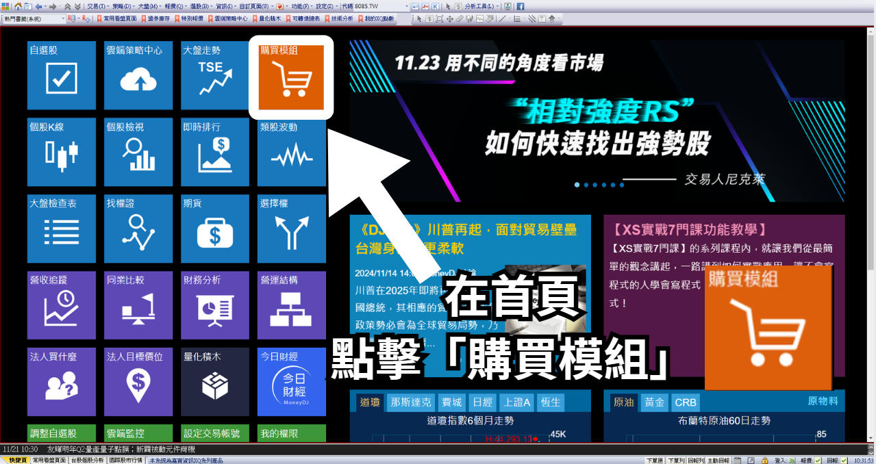 並點擊。接著您可以找到上方的「購買模組」按鍵,並點擊下去。▼首頁進入方式