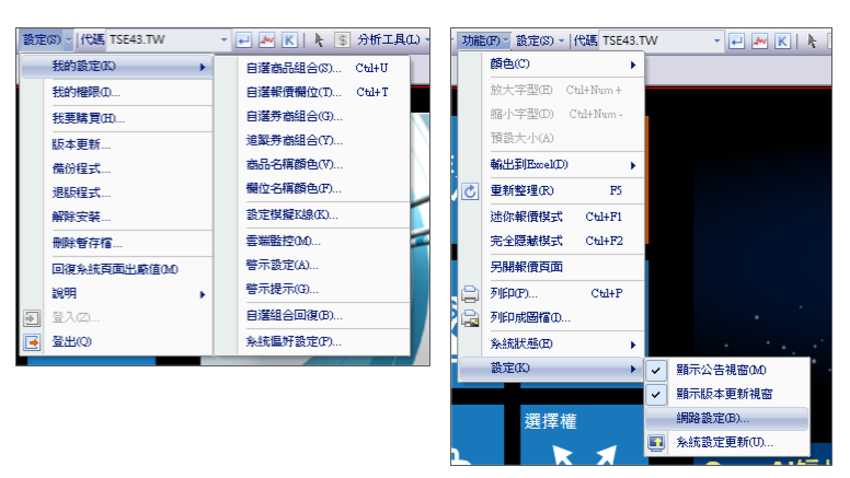 ▼ XQ 電腦版 - 看盤報價的相關選單路徑