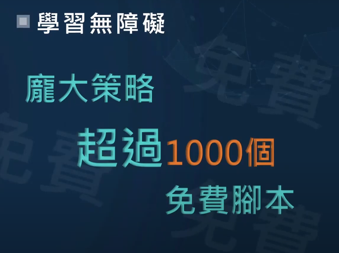 XQ提供了超過一千個免費腳本供投資人參考,這些腳本涵蓋選股、警示、指標與交易等各方面,所有腳本都能直接複製學習。想了解 XQ 的 XS 語法腳本相關功能,可以參考以下相關文章: 2.2.8. 程式自動下單