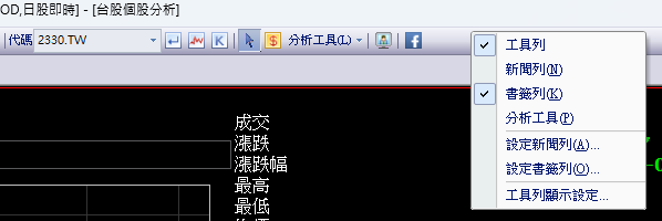 ▼ 以下為輸入商品代碼:2330 之後開啟的示意圖